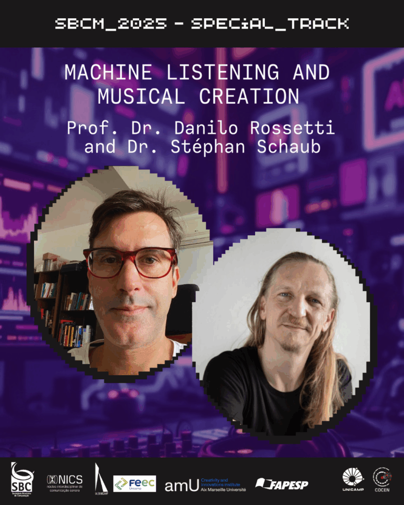 SBCM is a biannual event organized by the Computer Music Interest Group (CECM) of the Brazilian Computing Society (SBC). It is an exciting and thriving venue for sharing ideas about recent developments in computer music, sound and music processing, music information retrieval, computational musicology, multimedia performance, and many other topics related to art, science, and technology. In 2025, the SBCM will be hosted by Interdiciplinary Nucleus of Sound Studies (NICS) at the UNIVERSITY OF CAMPINAS (UNICAMP).
